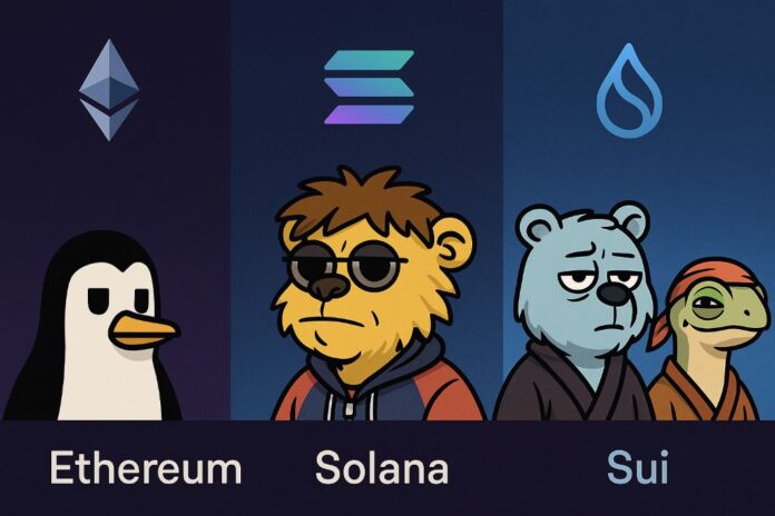 NFT-экосистемы распределились по разным блокчейнам. Ethereum, Solana и Sui — три ключевых игрока, каждый из которых предлагает свои особенности, комьюнити и подход к масштабированию. Кто же задаёт тренды в 2025 году?