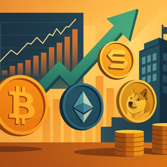 Альткойны: Solana (SOL), XRP и Dogecoin (DOGE) также показали рост от 1,5% до 3%, отражая общий позитивный тренд на рынке .
